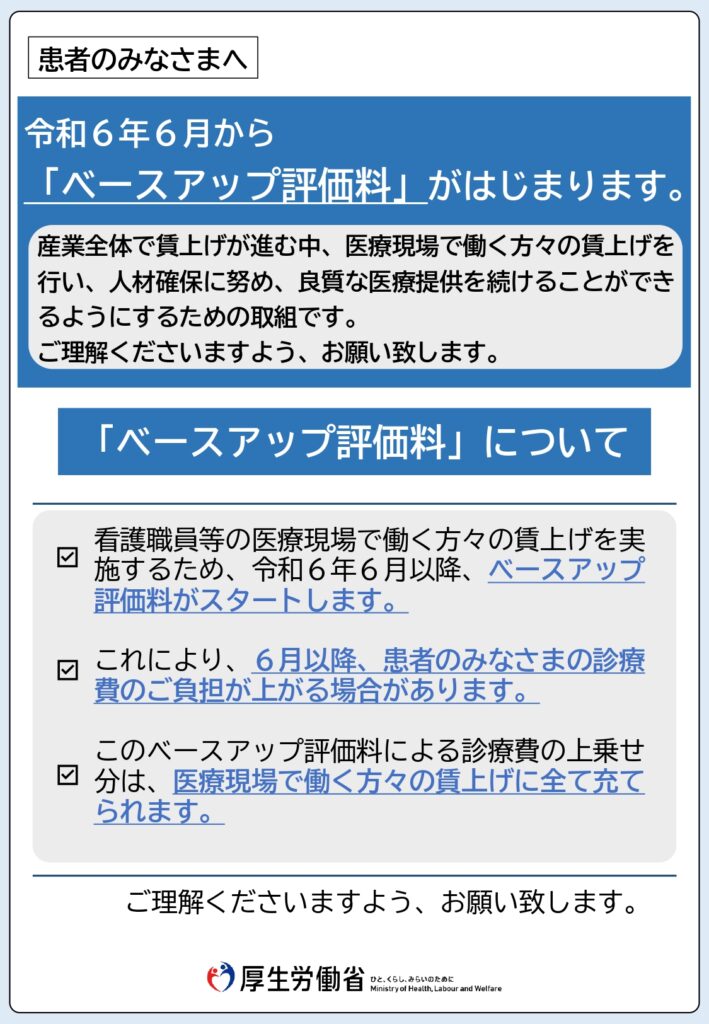 2026年5月より、当院では「外来・在宅ベースアップ評価料」の算定を開始いたします。