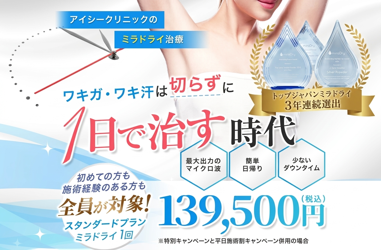 🏆 アイシークリニックはミラドライの公式認定医療機関です